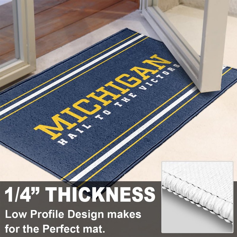 Campus Lab University of Michigan Hail to The Victors Anti-Slip Indoor Doormat, 20” x 31.5” Primary Mark, Floor Mat for Inside Entry Way/Back Door Garage Mudroom Home and Office, Low Profile