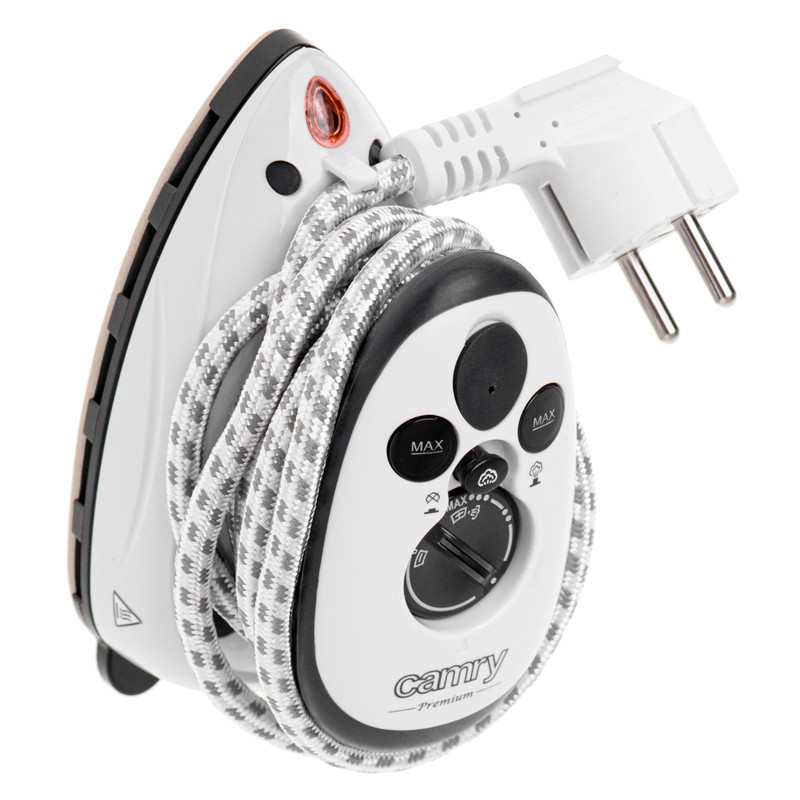 CAMRY CR5039 Mini Bügeleisen - Reisebügeleisen Mini Leicht, Dampfbügeleisen mit Doppelte Stromzufuhr, Keramische Bügelsohle, Ergonomischer Griff, Stufenlose Temperatureinstellung, 420W, Weiß/Navyblau