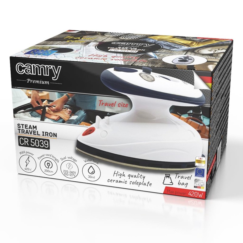 - Leicht und funktionell: Mit einem Gewicht von nur 0,48 kg und einem 30ml Wassertank ist das CR5039 mini bügeleisen funktionell und leicht zu transportieren.