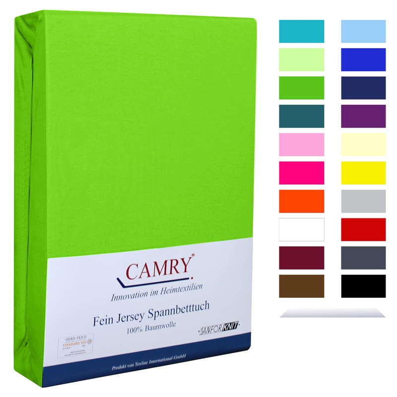 - Camry fine jersey fitted sheets: the Camry brand is manufactured in our own factory. High quality standards are taken into account during production. The fitted sheets in the size 90 x 200 cm - 100 x 200 cm are suitable for mattress heights of up to 23 cm.