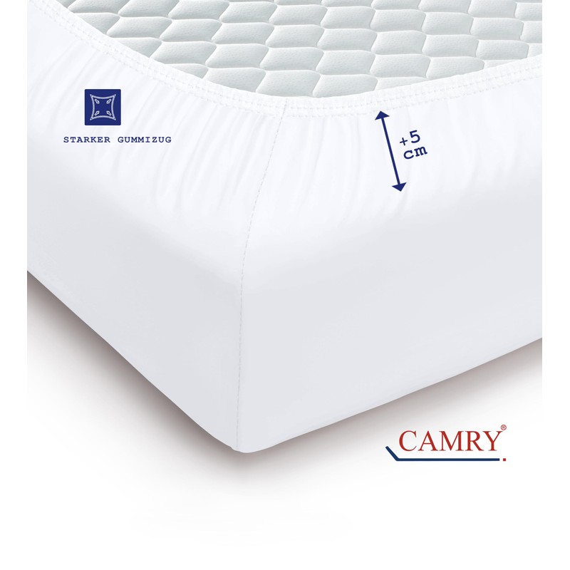 - Material: high quality standards are taken into account in the production of the CAMRY fitted sheet topper made of cotton in white. The jersey fitted sheets are made from 100% finest cotton.