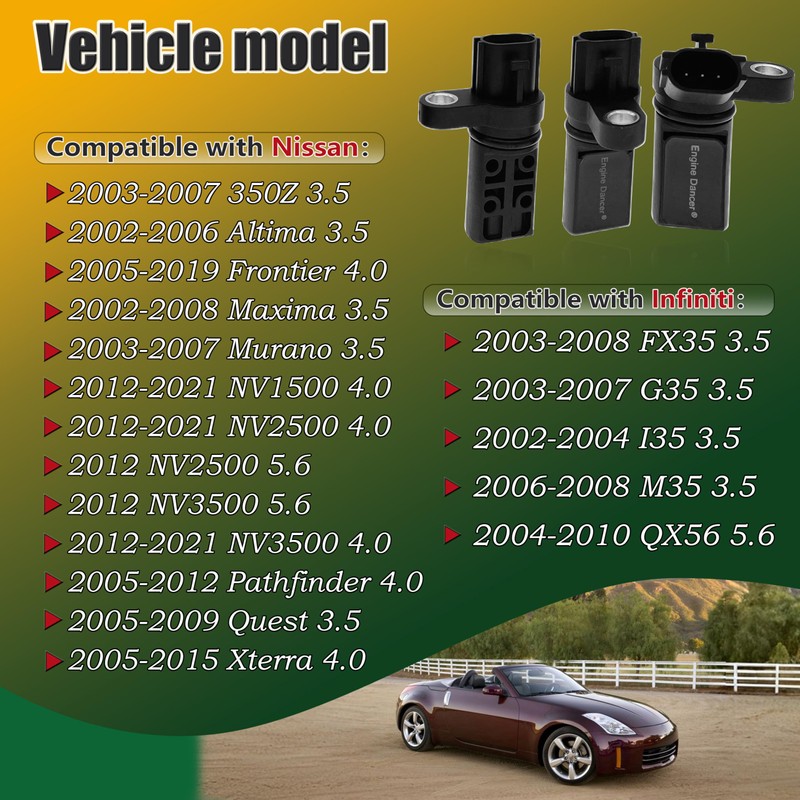 Camshaft Position Sensor Left & Right - Compatible with Nissan Altima Frontier Maxima Murano NV 1500 2500 3500 Pathfinder Quest Xterra 350Z for Infiniti FX35 G35 I35 M35 Replaces 907716 - Set of 2