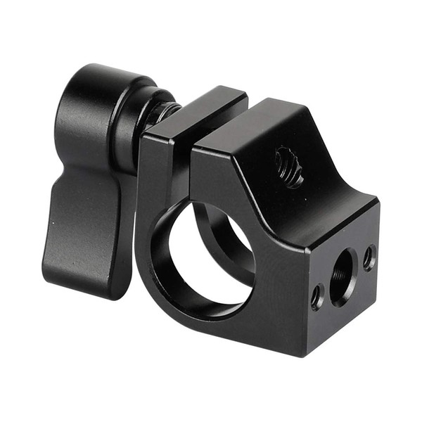 This CAMVATE 15mm single rod clamp features a 1/4"-20 threaded hole that allows it to be screwed to a camera cage or other devices. This allows a 15 mm rod to be attached for other accessories.