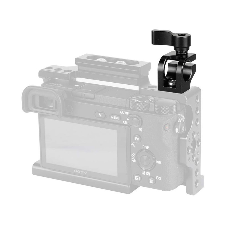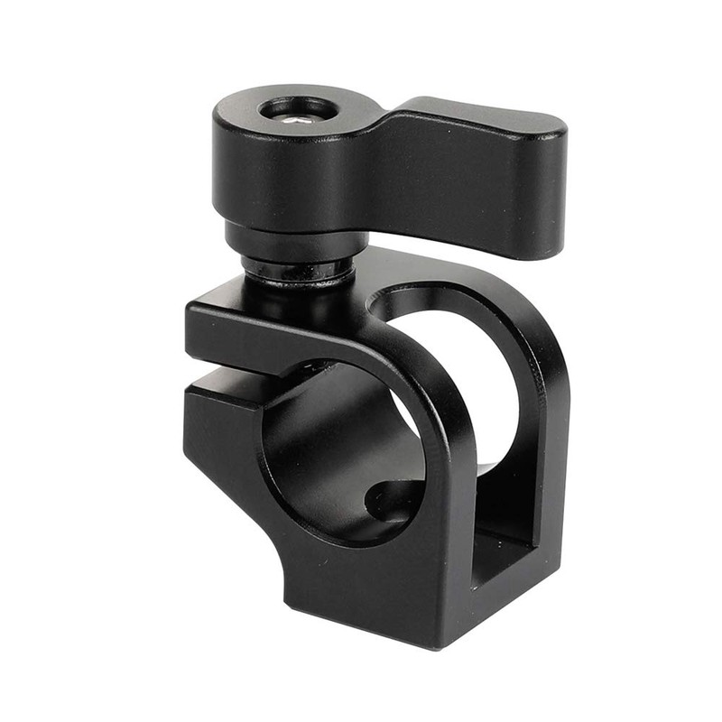 This CAMVATE 15mm Single Rod Clamp features a 1/4"-20 threaded hole that enables it to be screwed onto a camera cage or some other devices. So that a 15mm rod can be attached for more accessories.