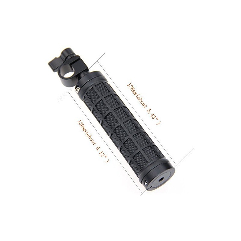 'The camera handle with standard clamp for 1 x 15 mm, Bar; Compatible with: All 15 mm rod/Lever. The camera grip is for 15 mm rod support rig, such as DSLR Shoulder Rig. It is a 1/4-20 thread hole in the base, which allows you to mount to a tripod.