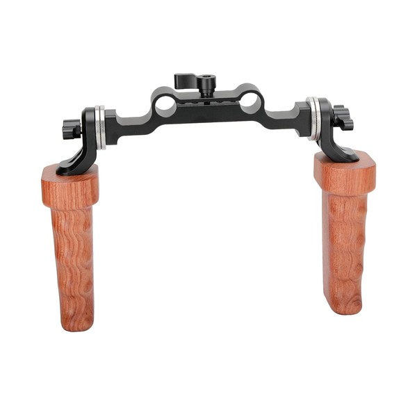 The CAMVATE Handgrip Pair for DSLR shoulder mount rig is an adjustable dual wooden handgrip system, it features rosettes extension arm M6 connection mount which allows you to orientate or adjust the handgrip in almost limitless positions. Its spring-loaded knobs lock and control the rig system easily and quickly.