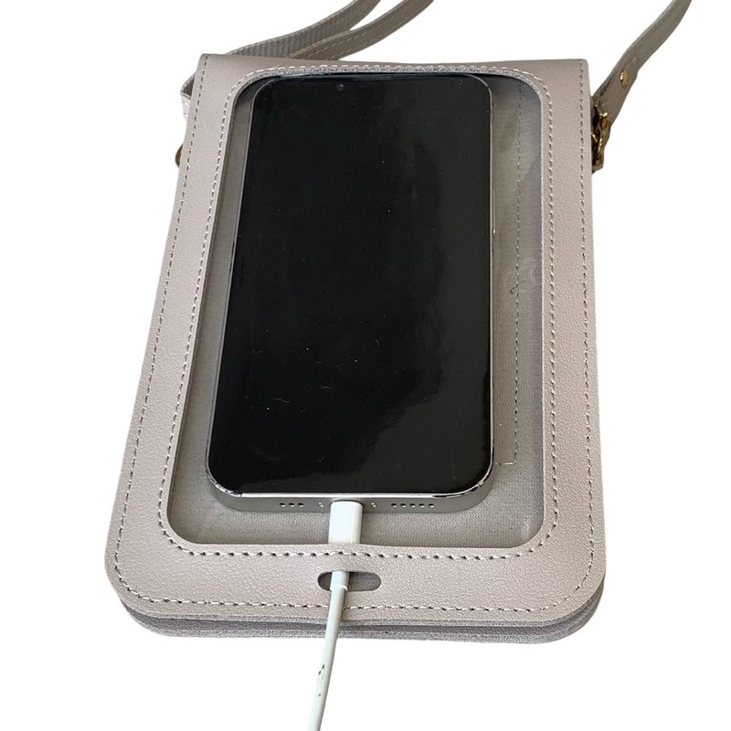 Can be charged while wearing it in the shoulder! Smartphone shoulder with window (Greige)
