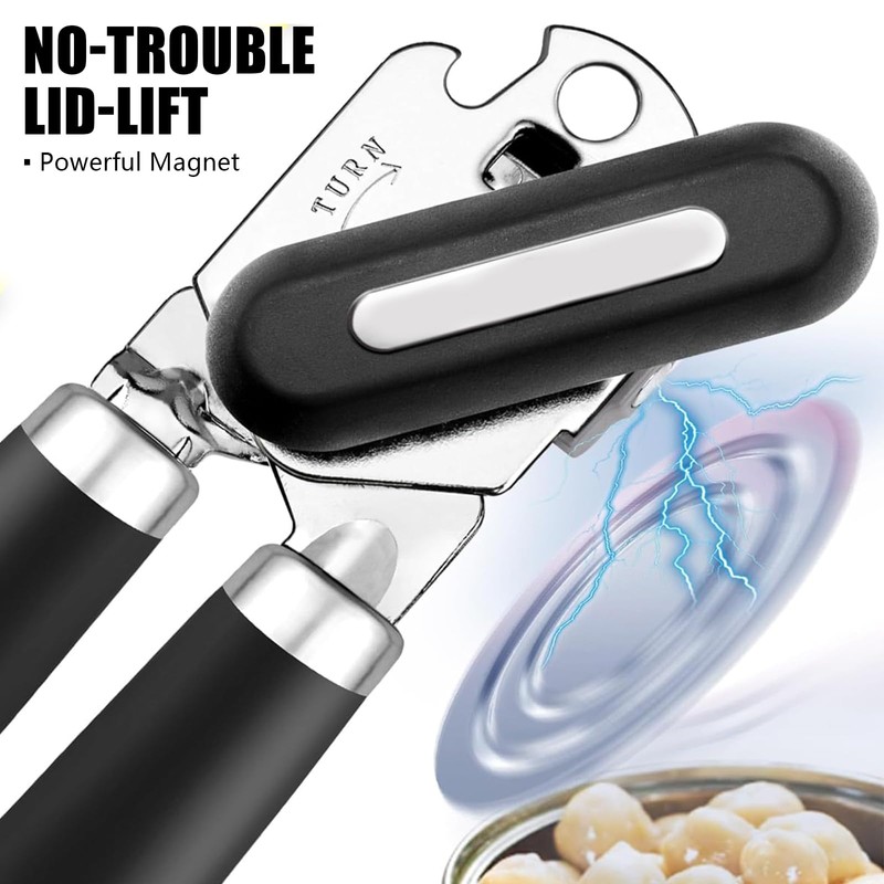 - [MAGNETIC LID LIFTER] - Built-in strong magnets to firmly lift and secure the lid, preventing it from falling into the jar and preventing accidental cuts. Enjoy a safer and cleaner can opening experience every time.