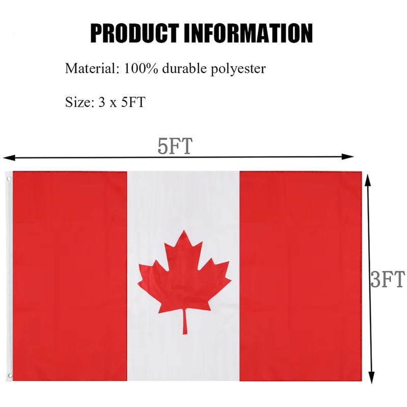 - Premium Service: We are confident you will be satisfied with the flags. If the 3x5 Canada Flag has any quality problems, please contact us