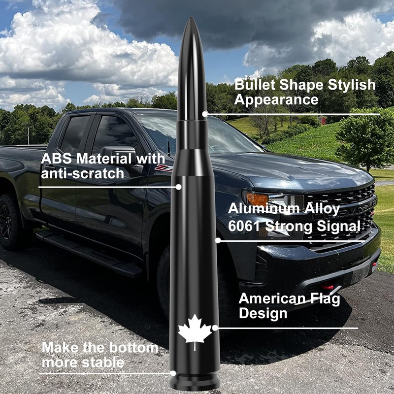 Canada Design Car Truck Bullet Antenna, Universal Short Replacement for GM Chevy Silverado GMC Sierra Dodge Ram 1500 2500 3500 Ford F150 F250 F350 Super Duty Raptor Pickup Trucks Accessories, Black