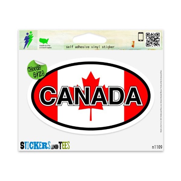 Canada Flag Oval Vinyl Car Bumper Window Sticker 5" x 3"