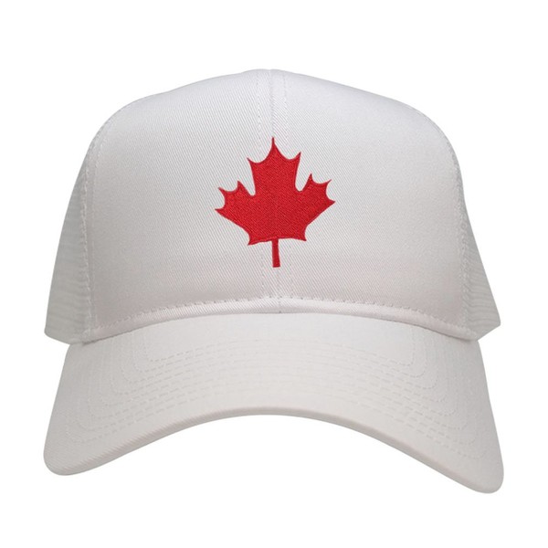 Canada Maple Leaf Embroidered Adjustable Mesh Trucker Baseball Cap - White
