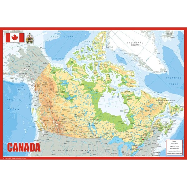 Canada Physical Map - 23.3 x 16.5 inches - Paper Laminated