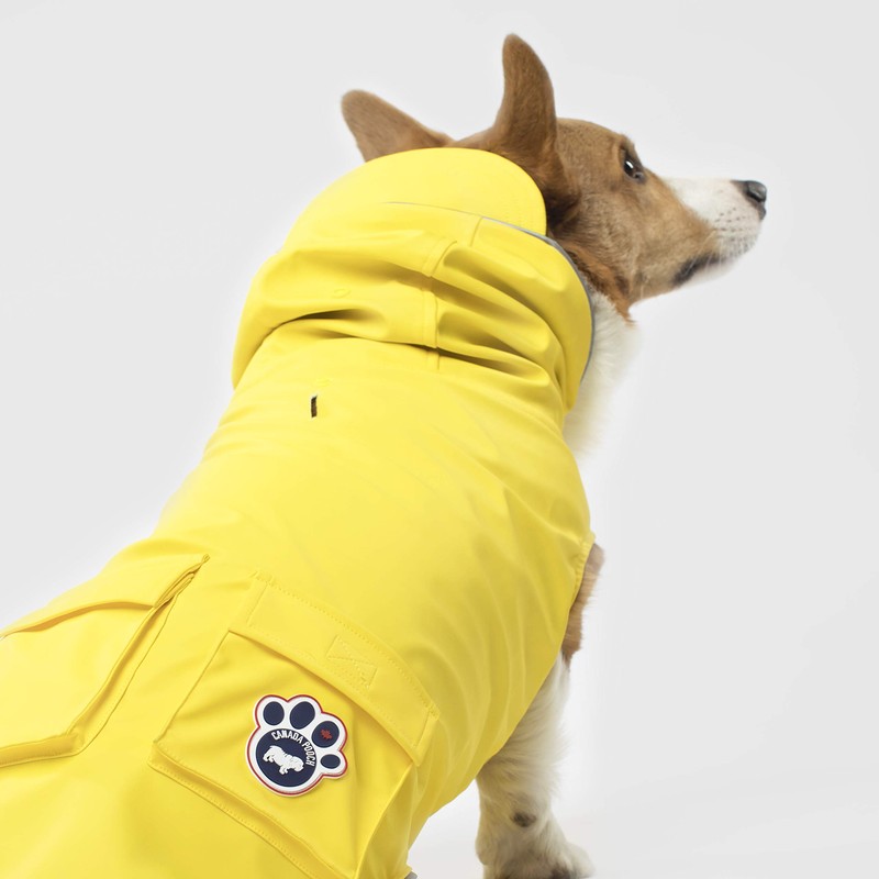 Canada Pooch Torrential Tracker Dog Rain Jacket - Easy On, Adjustable Full Body Coverage, Waterproof, Functional Pockets, Reflective Trim Rain Coat for Dogs, Great for Dogs (Yellow, 14)