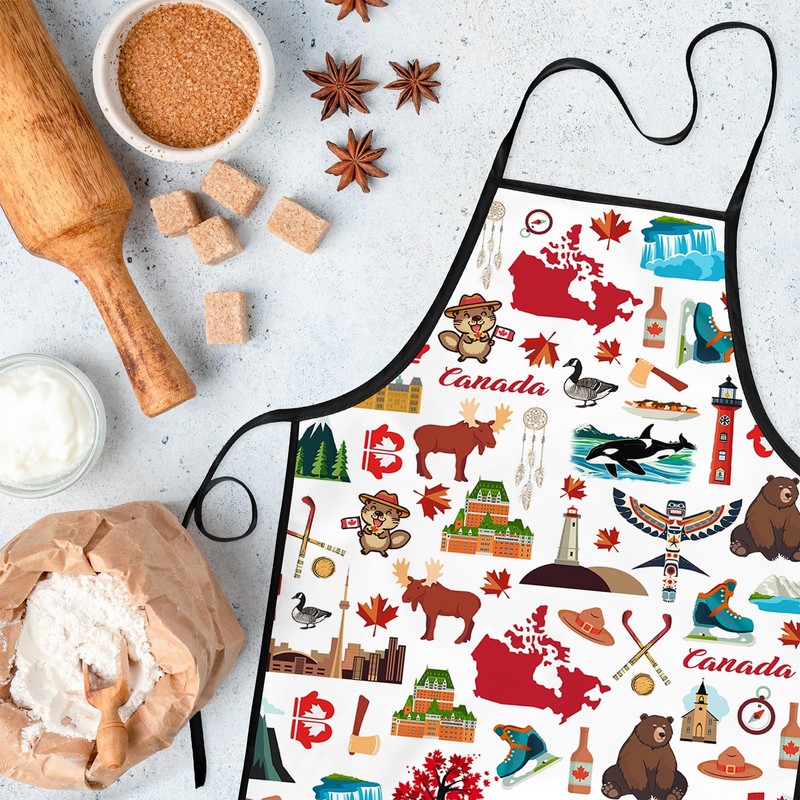 - Canadian Tourist Souvenir Gift: This cooking apron is printed with many classic Canadian icons, making it perfect as a travel souvenir gift for friends, family, neighbors, and colleagues who want to travel to Canada