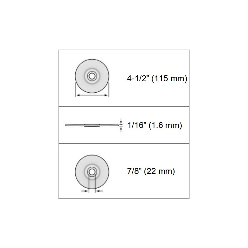 - 4-1/2" x 1/16" x 7/8" (115mm x 1.6mm x 22mm)