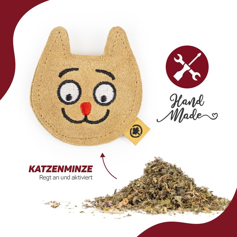 CanadianCat Company Cat Toy Scented Cushion Made of Leather with Catnip | Cat Head