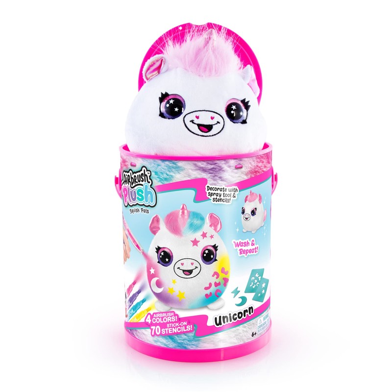 Canal Toys Personalize Airbrush Plush Medium Squishy Plush Unicorn! Decorate, wash, Repeat! Customize Your own Spray Art Plush with Markers, Airbrush Tool and 70+ Stencils. Ages 6+
