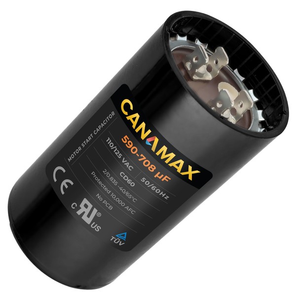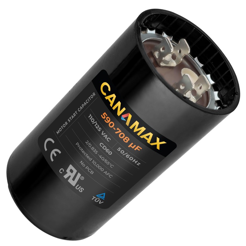 Canamax 590-708 MFD uf 50/60 Hz 110-125 VAC Volts Round Start Capacitor - Compatible with AC Motor Run or Fan Start and Cool or Heat Pump Air Conditioner - Replaces 6FLL3 2MDU7 CAP-590-110