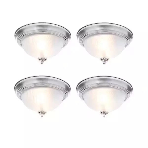 Included are four identical flushmount light fixtures. Add classic style to your den, living room or other interior spaces with these Brushed Nickel 2-Light Flush Mounts from Hampton Bay. Featuring a brushed nickel finish for a clean and timeless design, the frosted swirl glass dome adds a touch of elegance and charm and plenty of gorgeous illumination. Easy to coordinate with a variety of decor, these fixtures are also easy to coordinate with other brushed nickel pieces from Hampton Bay.