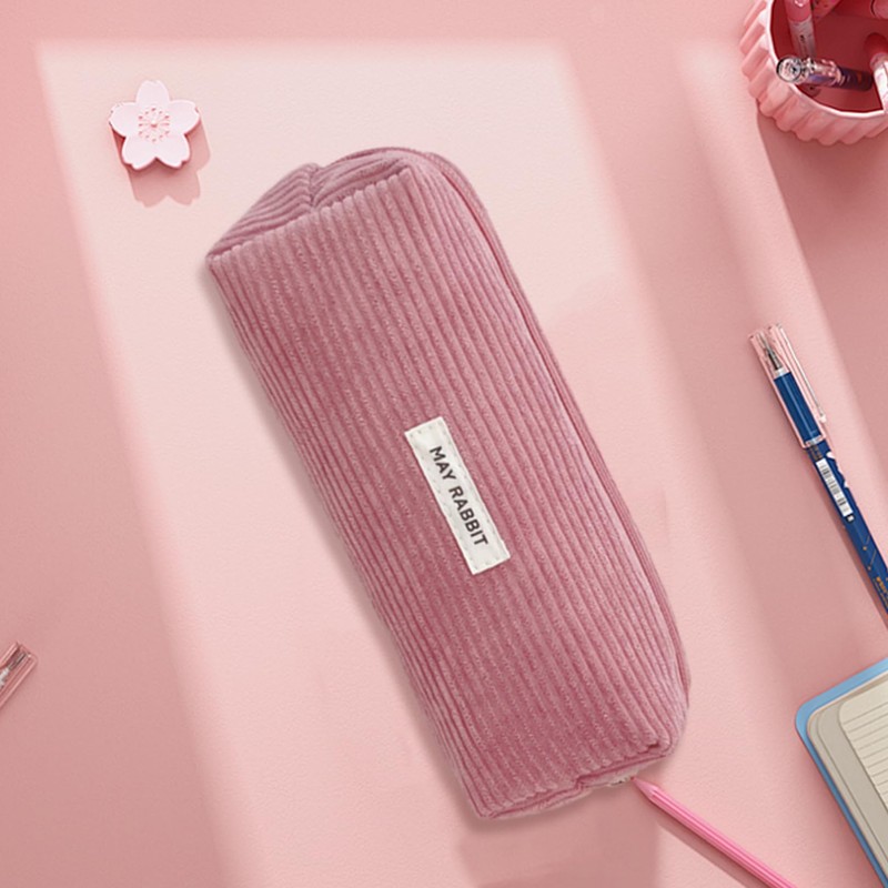 CANCYCC Corduroy Fabric Pencil Case Girls Pink Pencil Case Pen Bag Suitable for Schools Office Travel, pink, /