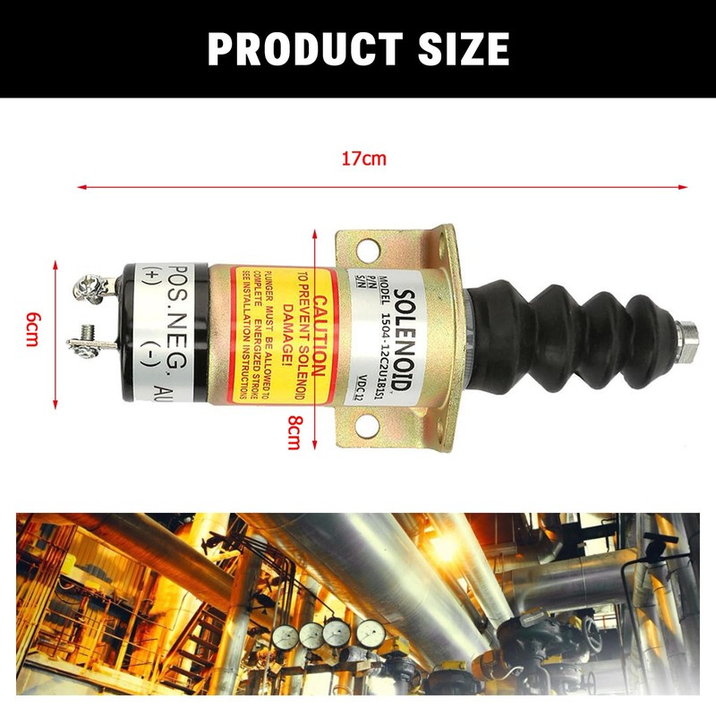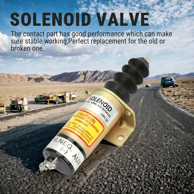 Candeon 12V Fuel Shut Off Solenoid, 1504-12C2U1B1S1 Stop Solenoid Valve, Steel Housing, Solenoid Valve Replacement Kit for Excavator Engine Genset