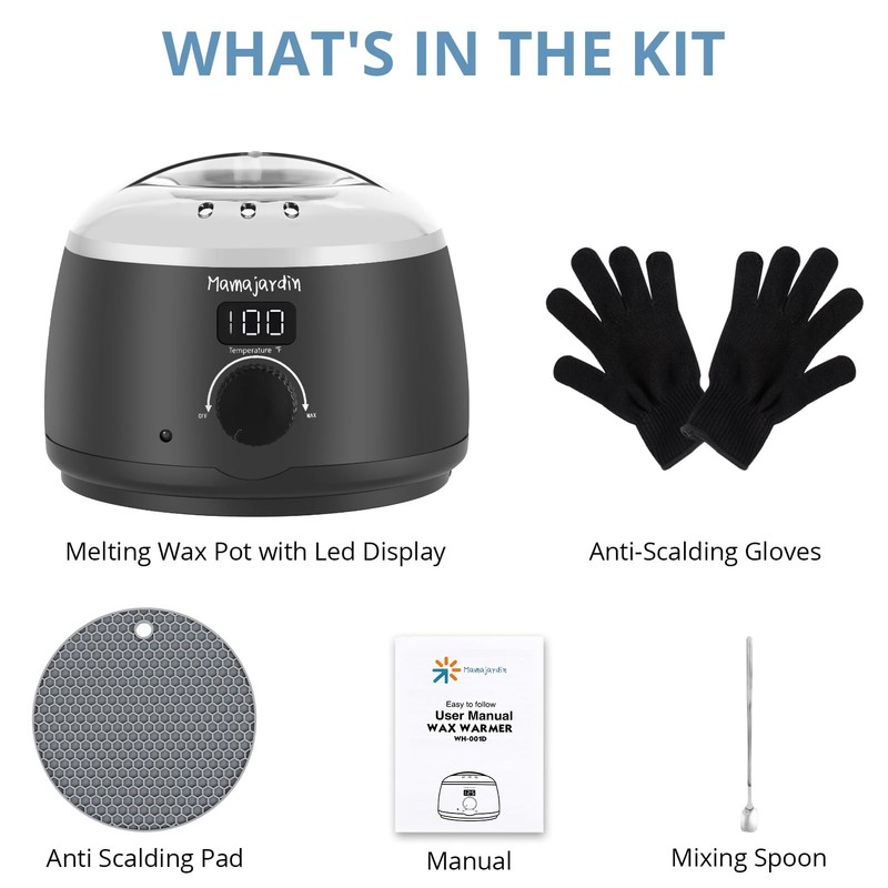 - 【Complete Candle Making Kit】 Mamajardin Candle making starter kit Includes :1 x LED display wax melter,2 x anti-scald gloves, 1 x stirring spoon, 1 x silicone anti-scald pads,1 x user manual and a Beautiful Gift Box.
