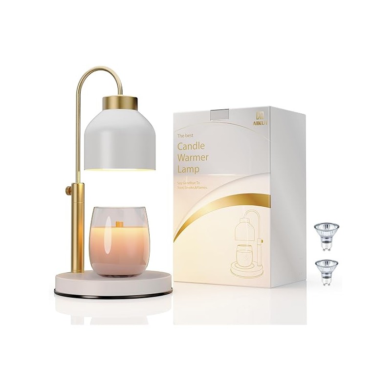 Candle Warmer Lamp, with 2 Bulbs,Timer & Dimmer,Compatible with Large Yankee Candle Jars,3 Wick Candles,Height Adjustable Electric Top Candle Melter,White,110-120v