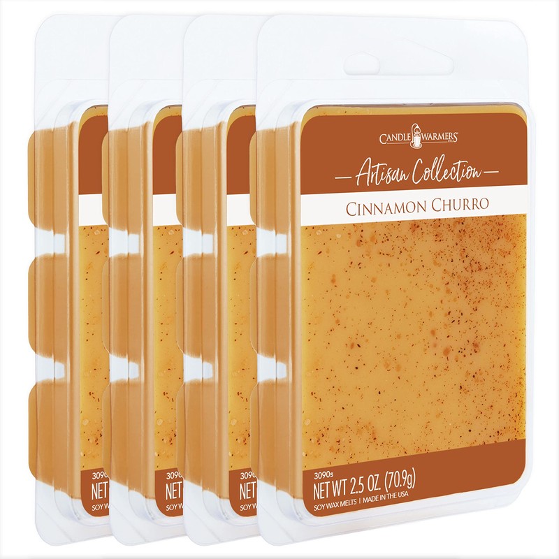Candle Warmers Etc Artisan Wax Melts 2.5oz, Cinnamon Churro Fragrance (4-Pack) – Each Pack has x4 2.5 oz Wax Melts and 30 Hours of Fragrance – Perfect for bedrooms, Living Rooms, and bathrooms