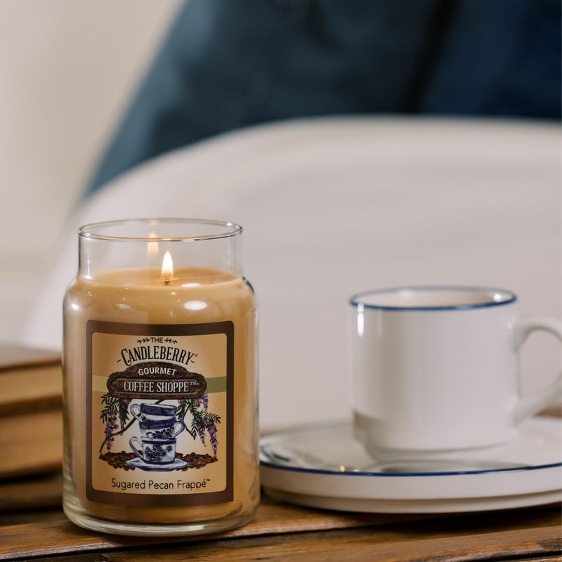 Candleberry Candles | Gourmet Coffee Shoppe Collection | Strong Fragrances for Home | Hand Poured in The USA | Highly Scented & Long Lasting | Large Jar 26 oz | (Sugared Pecan Frappe)