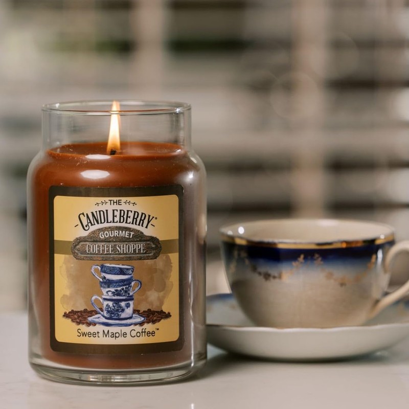 Candleberry Candles | Gourmet Coffee Shoppe Collection | Strong Fragrances for Home | Hand Poured in The USA | Highly Scented & Long Lasting | Large Jar 26 oz | (Sweet Maple Coffee)