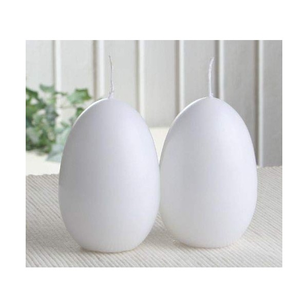 CandleCorner Egg Candles, Set of 2, Medium, Size 2, Approx. 9 x 6 cm, white
