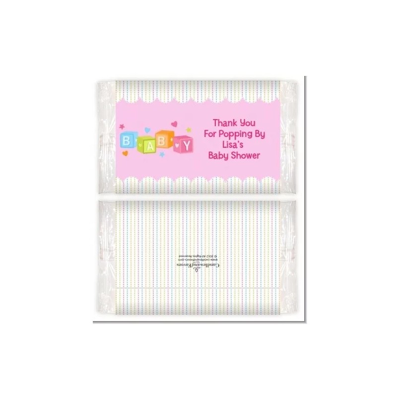 Candles and Favors Baby Blocks Pink - Personalized Baby Shower Popcorn Wrappers - Set of 12