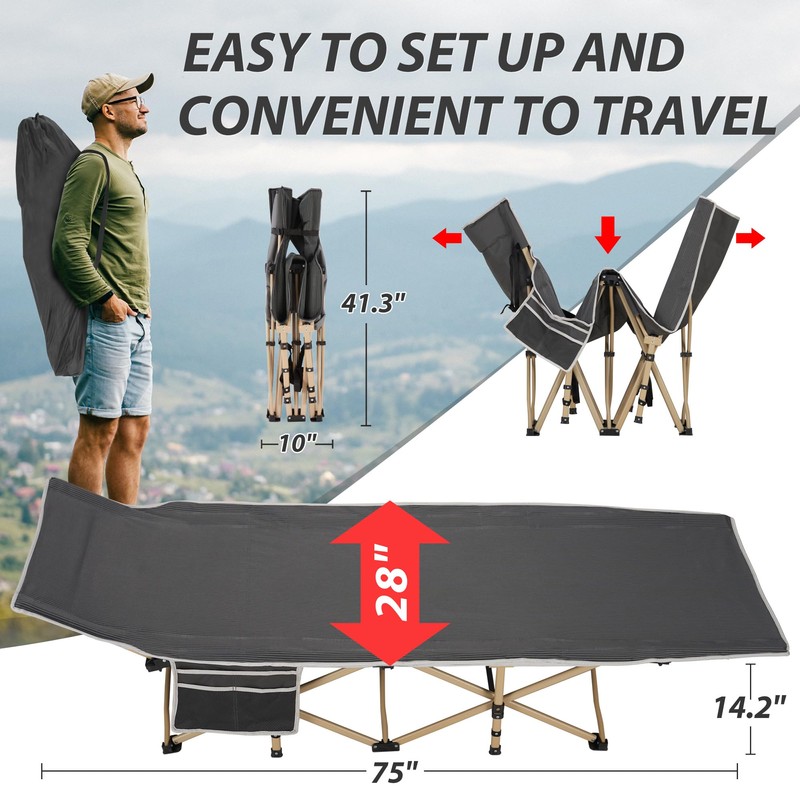 - 【Easy Folding 】Our portable bed require no complicated installation and can be easily folded and installed in seconds for great convenience. The cots for camping measures approximately 41.3 "L x 10" W and weighs only 13.23 pounds, making it compact and easy to carry and store, helping you travel light.Quick setup helps you save more time to relax or explore nature.