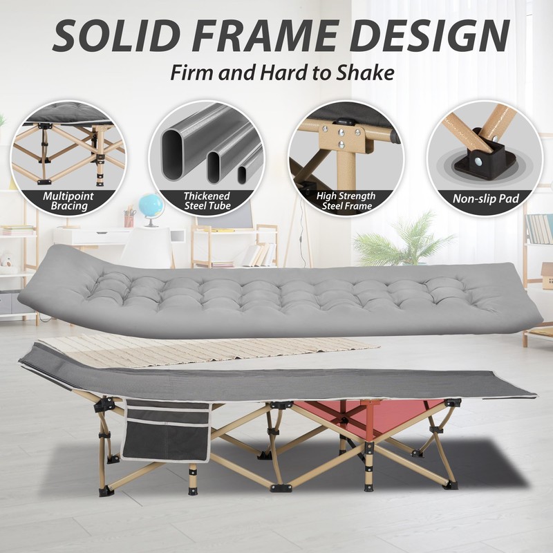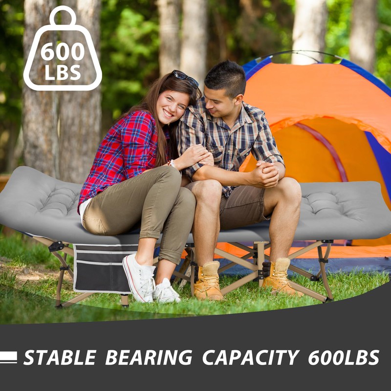 - 【Intimate Details】The camping bed are cleverly designed with a spacious side pocket at your hand to easily accommodate a variety of personal belongings such as magazines, mobile phones, water bottles and glasses, making your rest experience more convenient and comfortable.