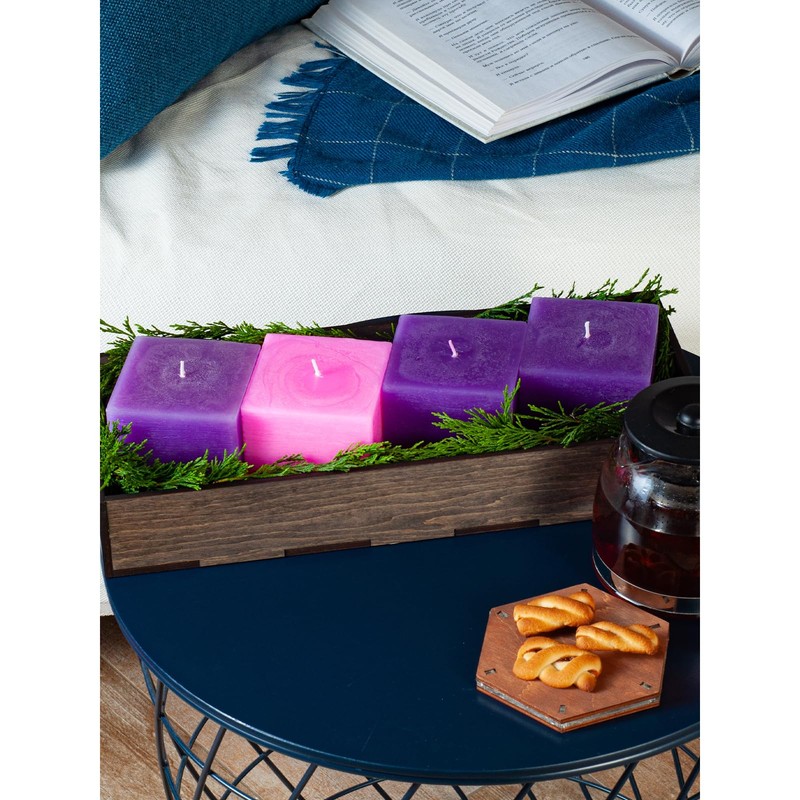- Hand poured candle - We carefully and lovingly make our advent pillar candles by checking every wick and texture of the manufactured advent candles pillar. That's why you can be sure of the quality of our purple pillar candles advent. Our square candles 3x3 will bring color and warm fragrances to your bathroom or bedroom. These necessary touches that finish a room can be handled with our 3 inch candles pillar. You can put square candle pillar anywhere or just leave them on the bathroom table.