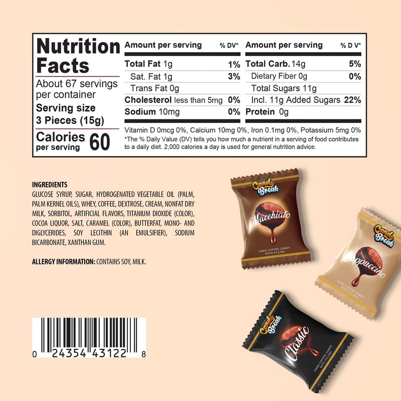 - Flavor Trio: Indulge in a delightful assortment of coffee flavors with Candy Break Coffee Candy, Macchiato, Espresso, and Cappuccinoeach offering a unique and rich taste experience.
