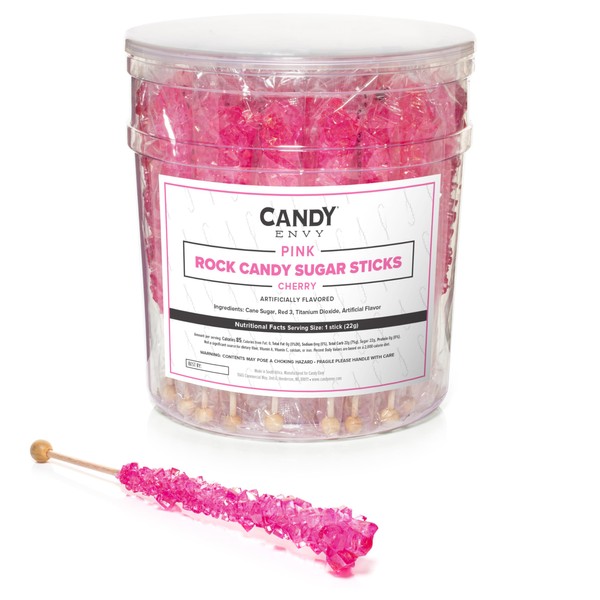Pink Rock Candy Sugar Sticks - Cherry Flavored - 36 Individually Wrapped Pink Candy