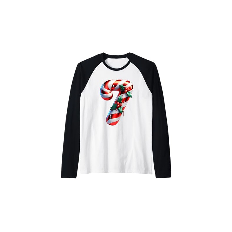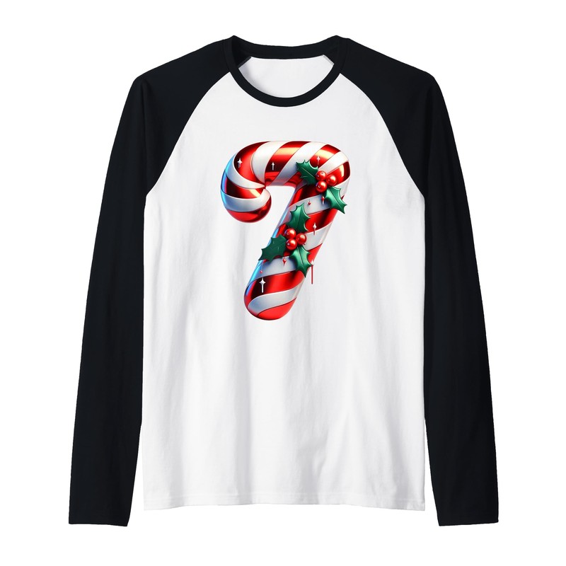 Candy Cane Seven Christmas Cheer Raglan Baseball Tee