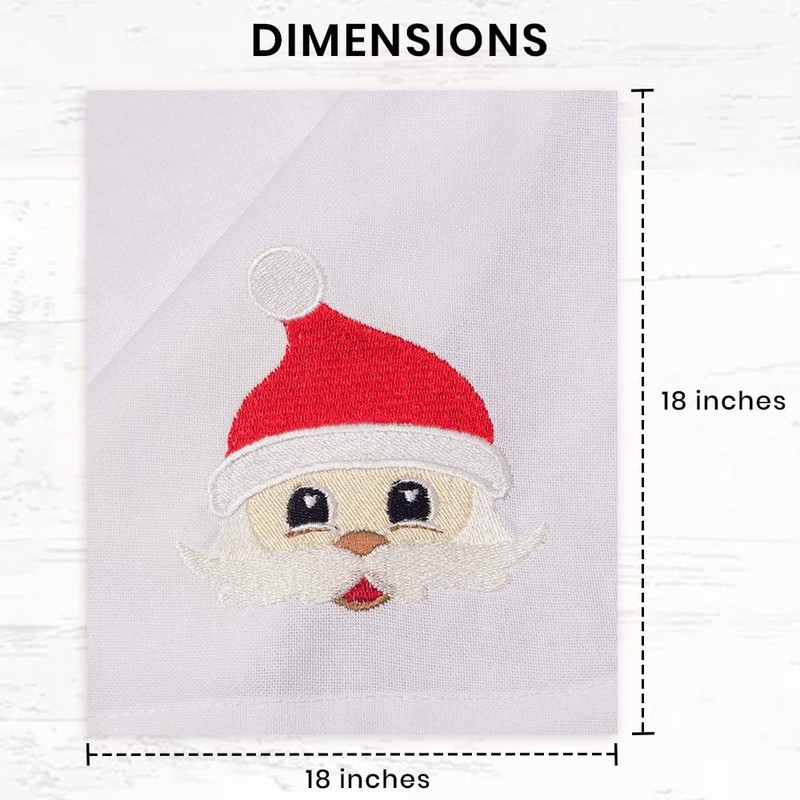 Candy Cottons Christmas Napkins Cloth Napkins Dining Table Dinner Napkins|Washable Cotton Napkins Easter Basket Decor|Happy Santa Face Embroidered 18x18 in White Pk of 6 Cocktail Party Napkins