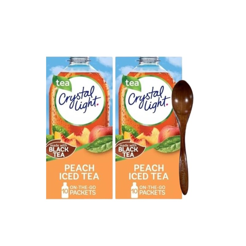 Candy Freezer Crystal-Light On The Go Drink Mix - Two (2) Pack of 10pck/0.13oz Pouches - Sugar-Free, Low-Calorie Refreshment Anytime, Anywhere and Candy Freezer Wooden Spoon (2 Pack, Peach Iced Tea) Wooden Spoon