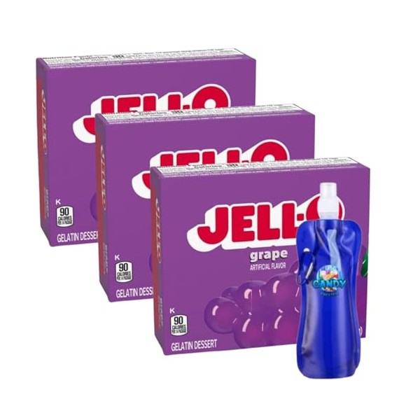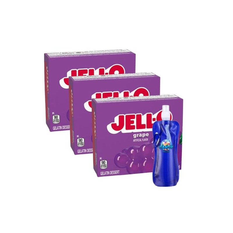 Candy Freezer Gelatin Dessert Mix - 3 oz Boxes (Pack of 3) - With Collapsible Bottle (Grape) - Bottle