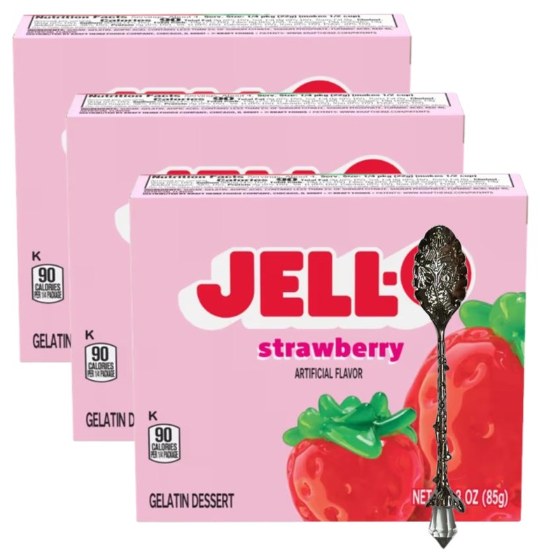 Candy Freezer Gelatin Dessert Mix - 3 oz Boxes (Pack of 3) - With Gem Spoon (Strawberry) - Gem Spoon
