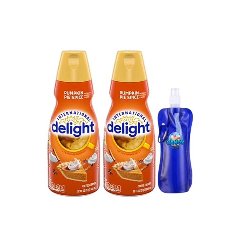 Candy Freezer International-Delight Liquid Coffee Creamer.- Two (2) 32 fl oz Bottles of Creamy Smooth Delightful Coffee Creamer with Collapsible Bottle (Pumpkin Pie Spice) Bottle