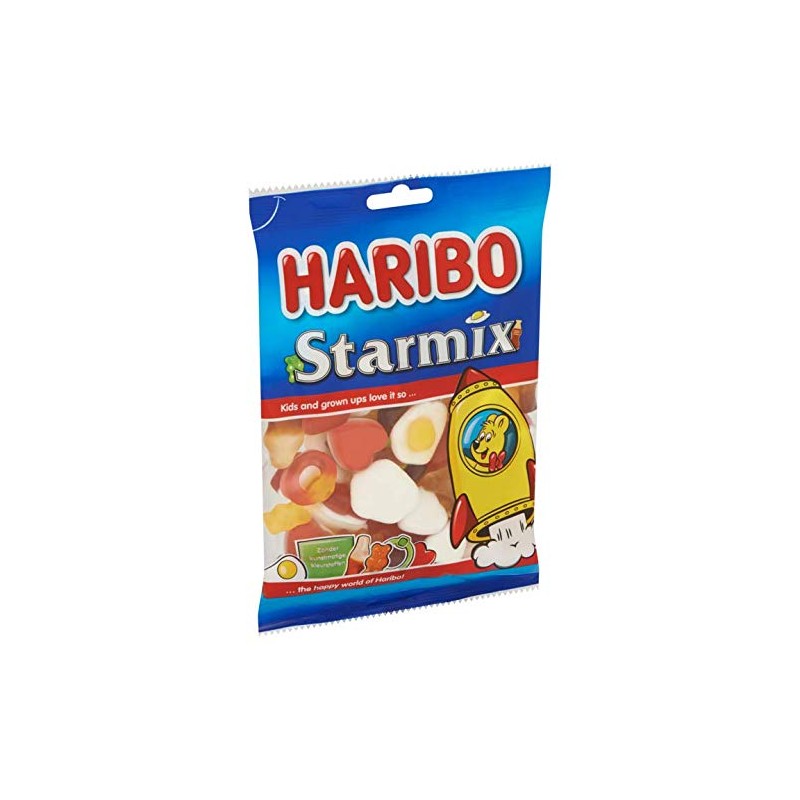 HARIBO Starmix, a mix of fruit gum and foam in nice shapes. Use and safety: Recycling: Bag: Plastic - Usually recycled Storage: Best before the end ... (see rear window). Protect against heat and moisture. Artificial additives: Without artificial colors
