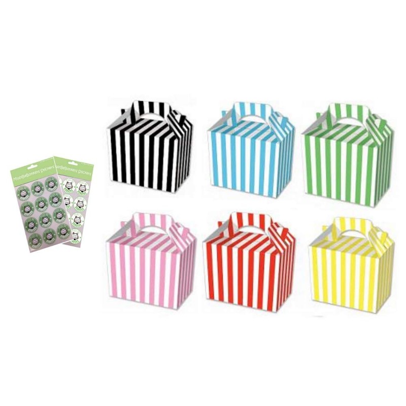 CANDY STRIPED BOX PARTY MEAL FOOD PICNIC GIFT BOXES WITH SEAL STICKERS (Mixed, 20)