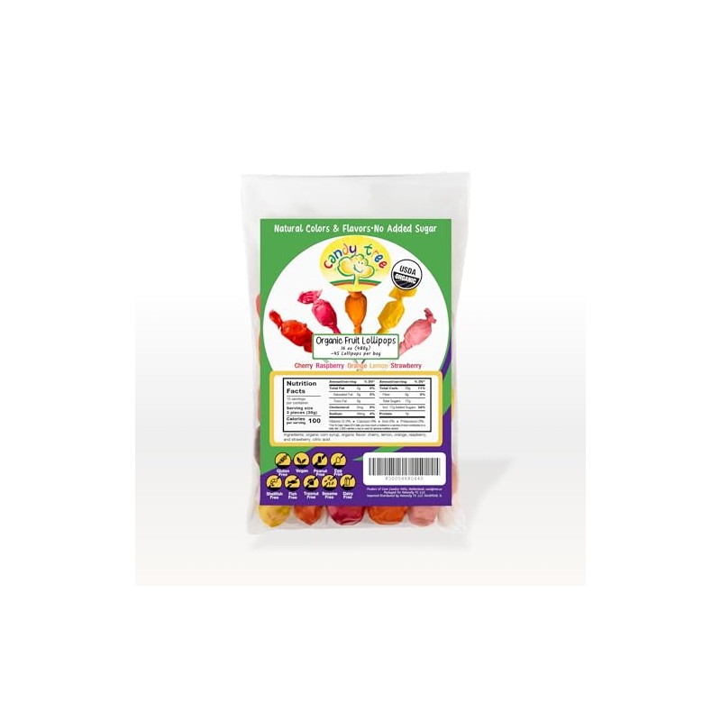 - Organic & Delicious – Enjoy 45 individually wrapped organic fruit lollipops in a 16 oz bag, made with natural flavors: Cherry, Raspberry, Orange, Lemon & Strawberry. Perfectly sweet with no added sugar.