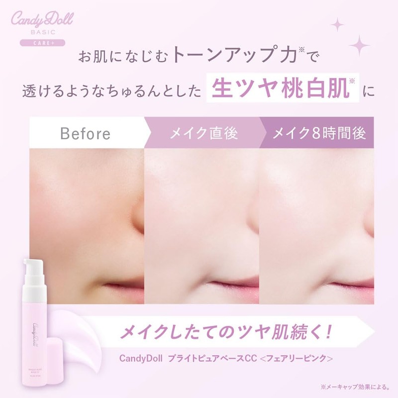 CandyDoll Bright Pure Base CC SPF50+ PA+++ UV Reduction [Produced by Tsubasa Masuwaka] Makeup Base Control Color Makeup Base UV Cosmetics Base Makeup Tone Up (Fairy Pink)