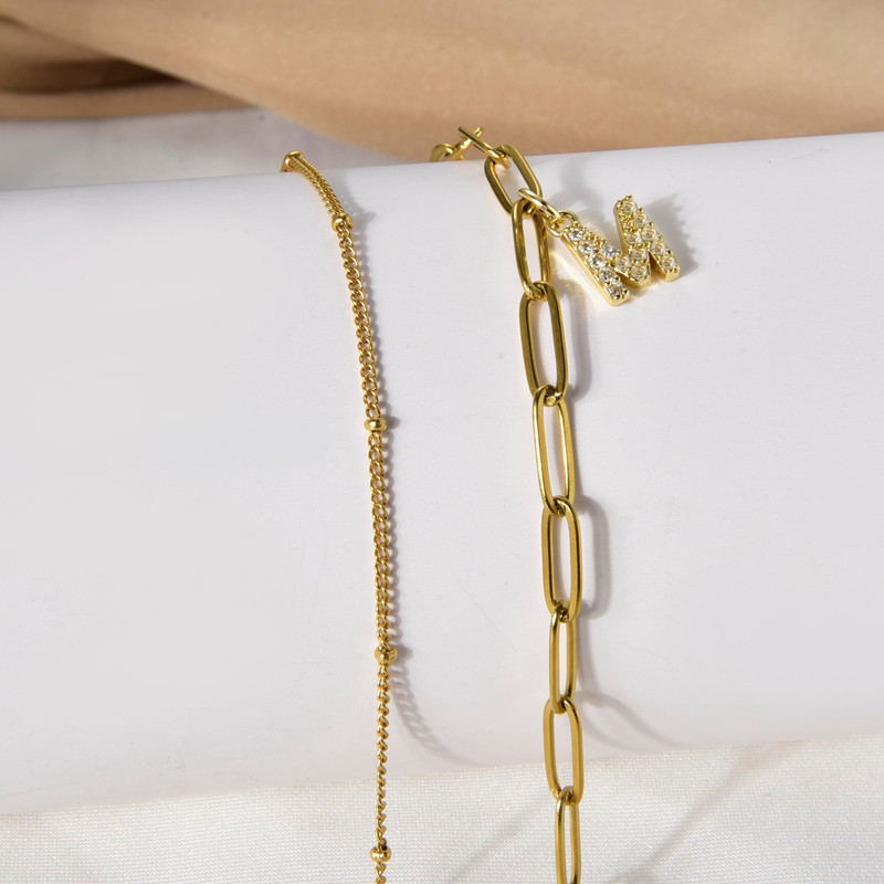Elegant Two-Piece Design - This bracelet set includes a dainty gold beaded bracelet and a personalized letter bracelet, creating a perfect layered look. Ideal for everyday wear or special occasions, adding a touch of shine to your outfit. Stylish Layered Bracelet Set - This two-piece set includes a delicate gold beaded bracelet (1.5mm chain width, 17 5cm length) and a personalized initial charm bracelet (4.1mm chain width, 16 5cm length), designed to be worn together for a chic, layered look that complements any outfit. Premium Quality Materials - Made with high-quality titanium steel and plated with durable gold coating, these bracelets are designed to resist fading and tarnishing, ensuring long-lasting wear while being gentle on sensitive skin. Personalized Initial Bracelet - The initial bracelet can be customized with the letter of your choice, adding a personal and unique touch, making it a perfect option for expressing your individuality or as a thoughtful gift.
