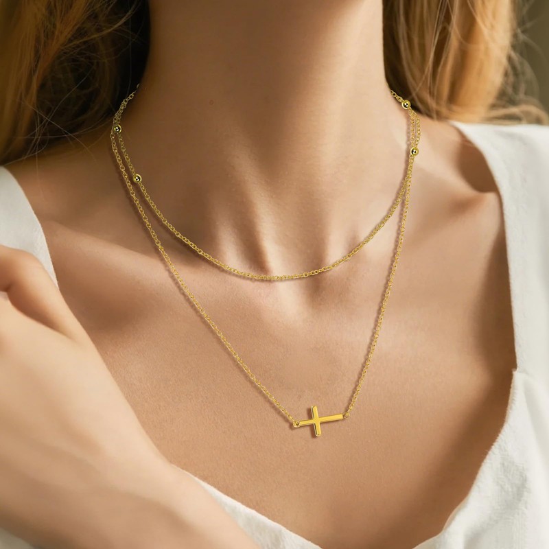 CANDYFANCY Gold Cross Necklace for Women 18k Golden Plated Layered Necklace Cute Cross Pendant Choker Layered Necklaces Birthday Christmas Faith Jewelry Gifts for Friends Mom Daughter Sister Her